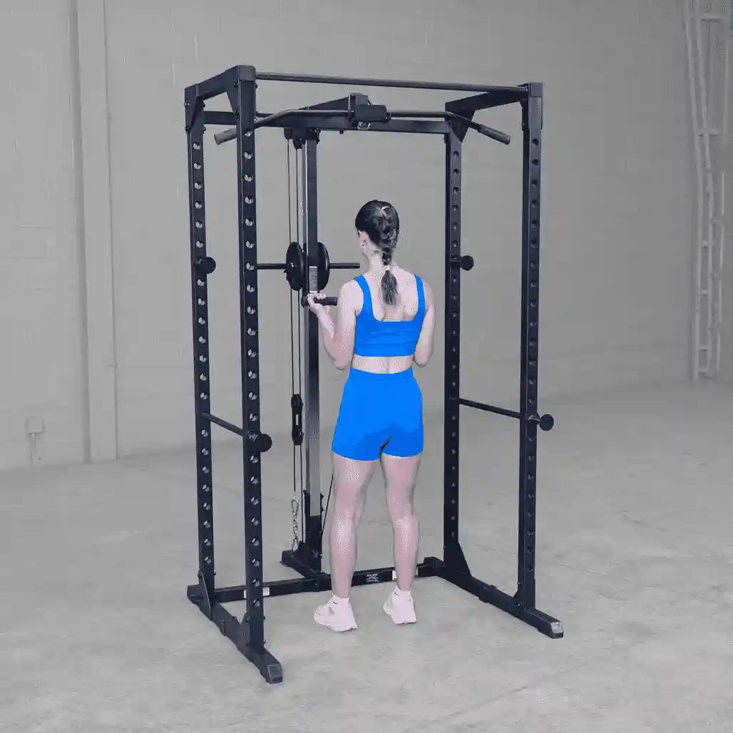 Body-Solid Best Fitness Lat Attachment for BFPR100R Best Fitness Power Rack. The BFLA100 Lat Attachment transforms your BFPR100R Power Rack into a complete home gym. Perform lat pulldowns, rows, biceps curls, shrugs and more in the comfort and stability of your existing power rack.
