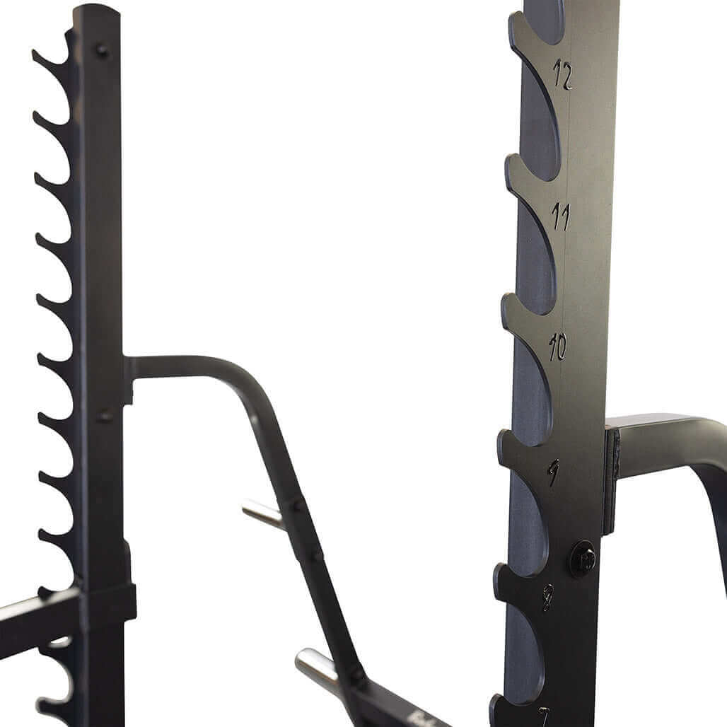 Gain instant confidence with every single rep. The robust 14-position gunrack is built to handle a colossal 1,000 lbs, providing ample capacity for progressive overload. The intelligently placed lift-off and safety points ensure racking is always smooth and predictable, minimizing hesitation and maximizing focus.