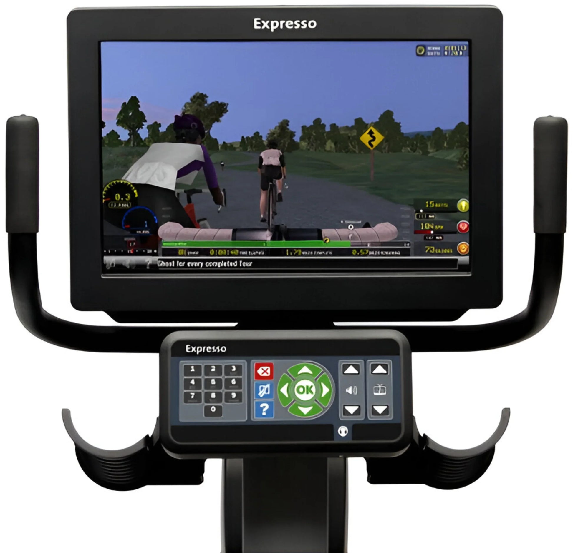 The Expresso S3r NOVO Recumbent Bike brings interactive and engaging cardio workouts inside with the adventure of outdoor riding. Personalized training features, including a convenient walk-through design and ergonomic seat and back rest, help members achieve greater fitness. Dynamic content keep workouts fresh. Captivated by stunning graphics, realistic rides and in-ride games on over 30 virtual courses, members will quickly forget they are exercise Realistic Cycling SHIFT gears and STEER handlebars just like a real bike. Pedal resistance changes with the terrain. Monitor your workout members riding together in-facility, in which they can see each other on-screen. Real-time fitness information helps members monitor their workout. Expresso Novo and CyberCycle bikes are based on the Red Hat Linux OS. They are not susceptible to the Windows-based viruses and malware that are the main source of network integrity problems.