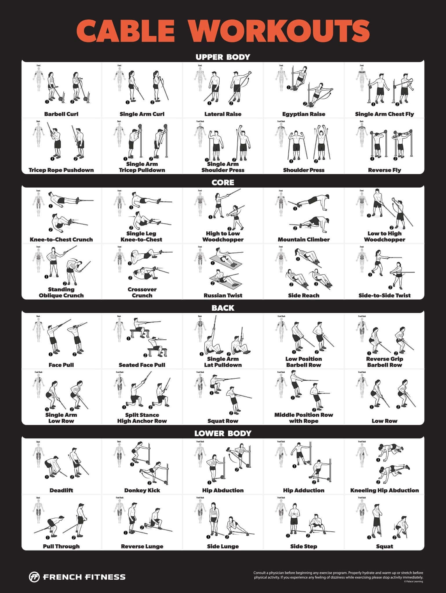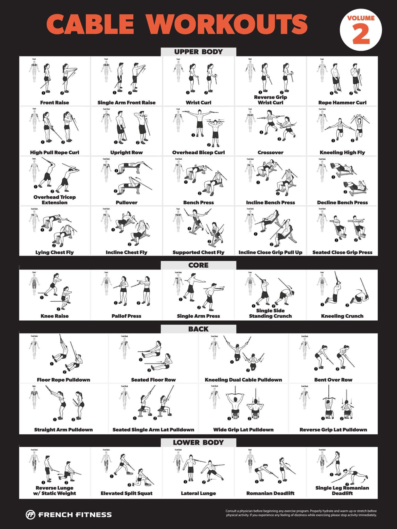 French Fitness Cable Machine Workout Training Charts / Posters (New)