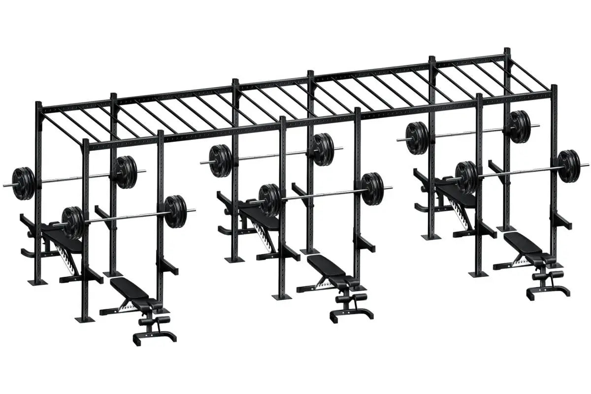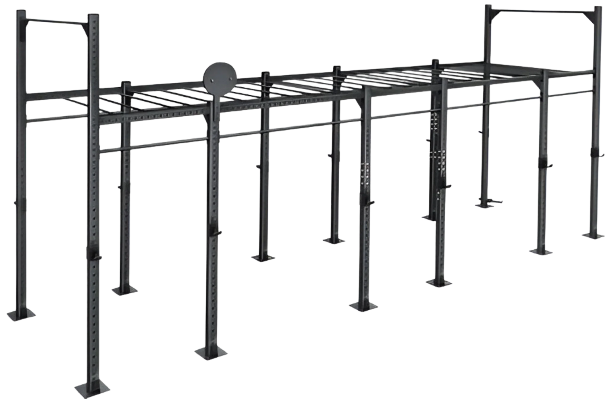 The French Fitness Rig is made of sturdy 75mm x 75mm x 3mm, 11 gauge uprights. To create the ideal rig for your gym, simply decide on the height of your uprights (108" or 142" is around 9 feet or 12 feet), your pull-up bars, and your cross members. We provide a large selection of attachments that you can combine with your rigs to achieve your fitness objectives.