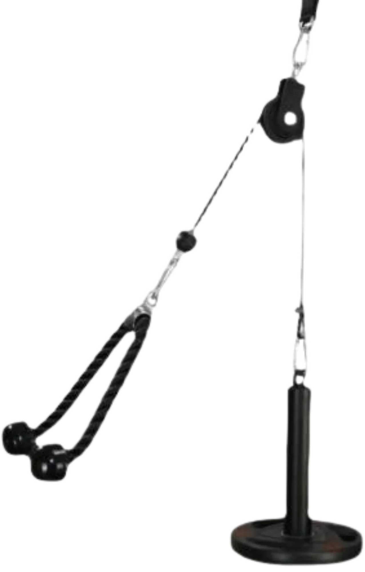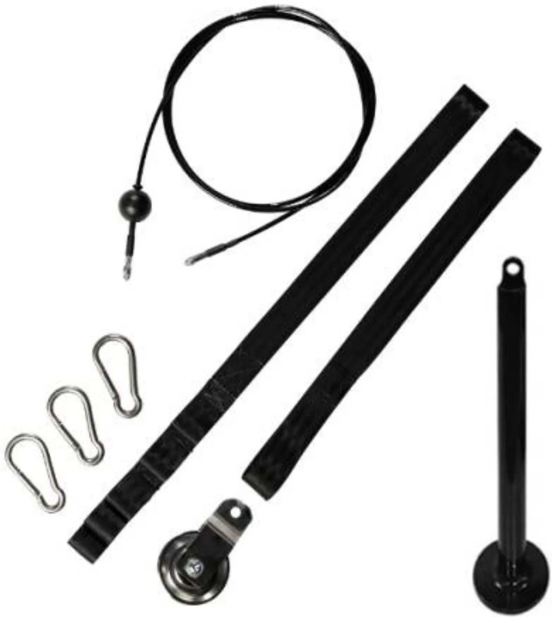 The French Fitness Plate Loaded Pulldown Portable Cable Trainer Slinger is ideal for Power Racks and Squat Racks, this uncomplicated pulley setup effortlessly links up to any horizontal beam capable of handling your preferred training load, delivering dynamic high pulley exercises wherever you train. Whether you're utilizing a power rack or not, it conveniently sets up on any overhead attachment point. Its lightweight design and simple assembly make it an excellent choice for your home gym, suitable for on-the-go workouts. Versatile for both indoor and outdoor use, this fitness equipment stands out as a dynamic option. In areas where a Cable Machine could be too cumbersome, it offers the advantages of a standard cable system without the inconvenience of substantial equipment.