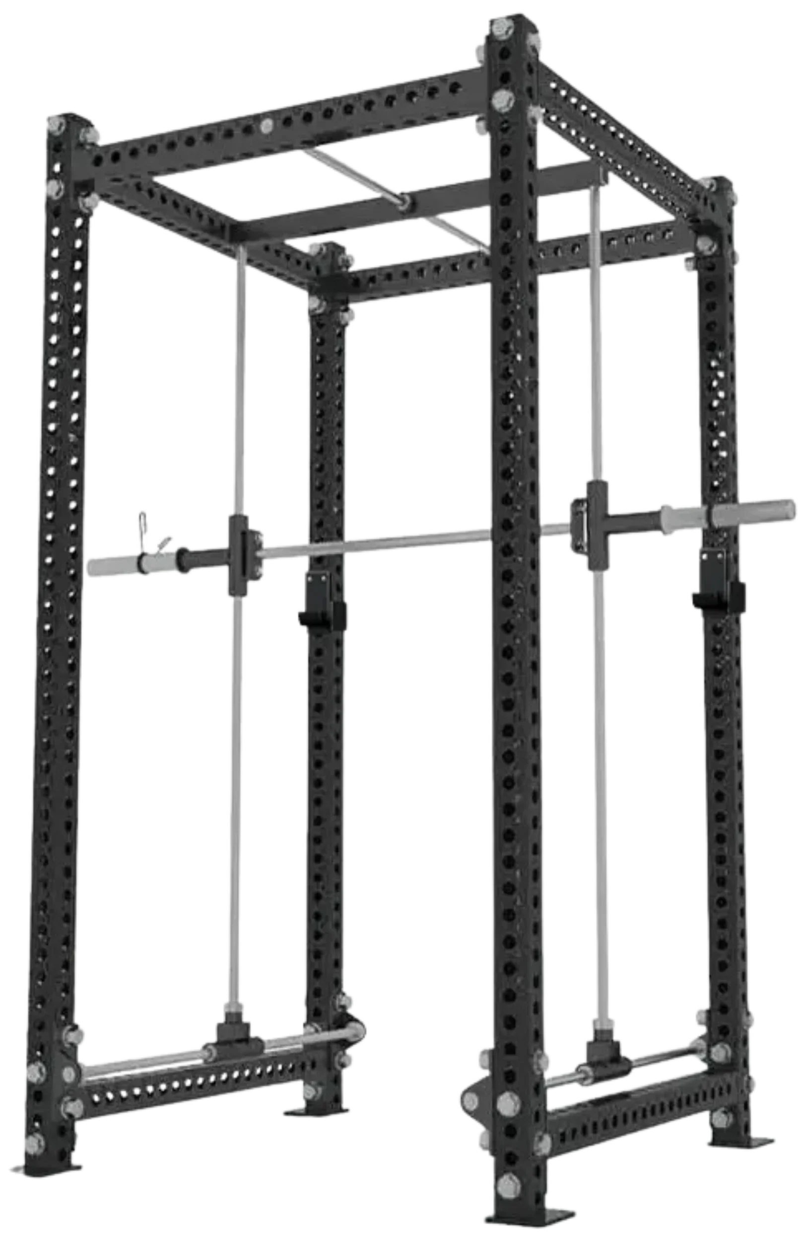 The French Fitness R30-3DS Monster 3D Dual Action Smith Rack is constructed from robust 11-gauge steel, featuring a sturdy steel tubing with dimensions of 3" x 3" and a thickness of 3 mm. Its compact and space-efficient design makes it a perfect fit for home gyms or smaller workout spaces. The equipment comes equipped with laser-cut holes that allow for easy attachment of accessories such as spotter arms, J-hooks, dip horns, and more. These laser-cut holes provide a convenient and customizable way to expand the functionality of the equipment, allowing you to attach add-ons and optimize your workout experience. Now you can personalize your lifting sessions with ease, making this equipment a versatile and valuable addition to your fitness arsenal.