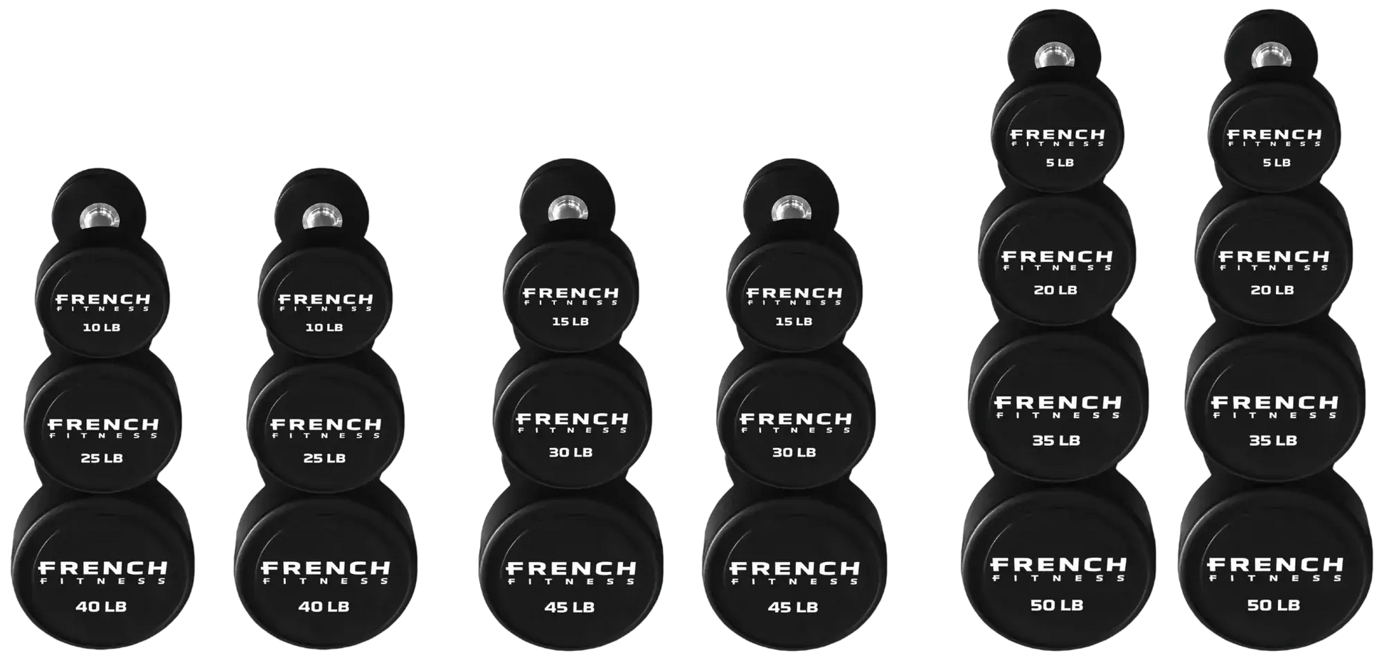French Fitness Urethane Round Pro Style Dumbbell V2 Set, 5-50 lbs (New)