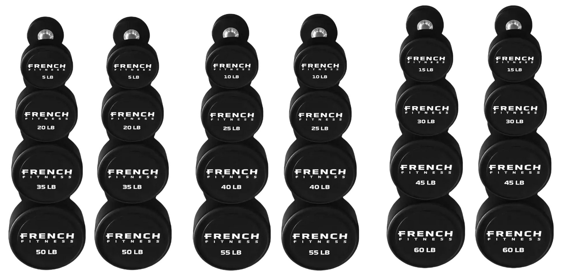 French Fitness Urethane Round Pro Style Dumbbell V2 Set, 5-60 lbs (New)