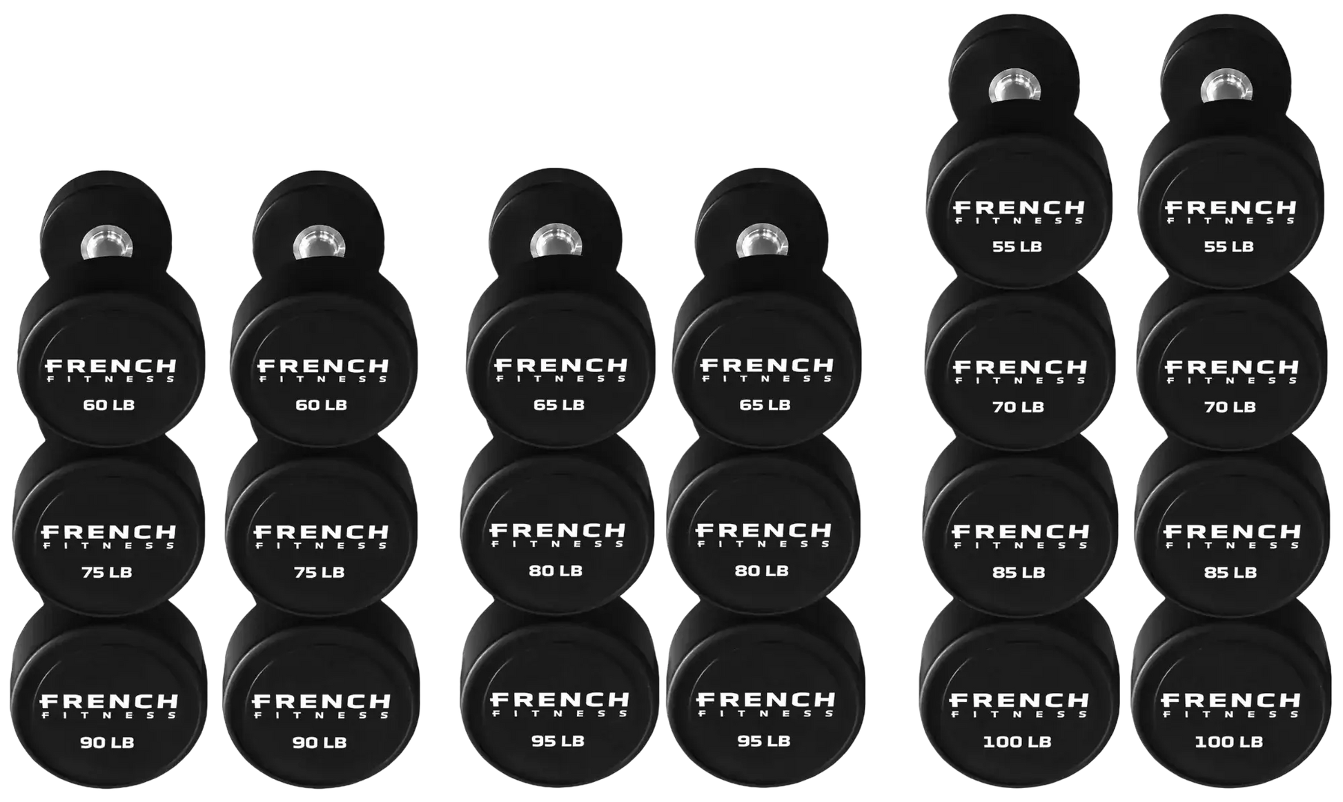 French Fitness Urethane Round Pro Style Dumbbell V2 Set, 55-100 lbs (New)
