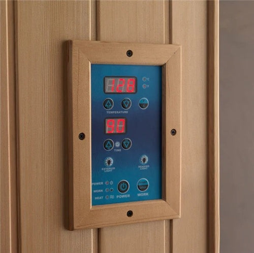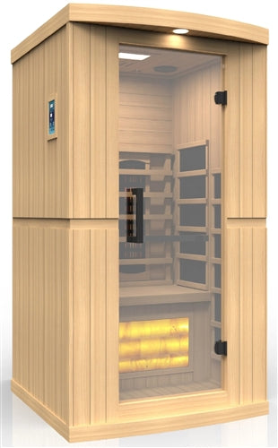 | Golden Designs GDI-8010-02 1-2-Person Full Spectrum PureTech Near Zero EMF FAR Infrared Sauna with Himalayan Salt Bar, the Carbon Tech heating panels are engineered to produce a wider, softer heat that is evenly distributed throughout the sauna. Golden Designs Carbon Tech heating panels cover a significantly larger surface within the sauna. Sauna Use: Indoor Only |