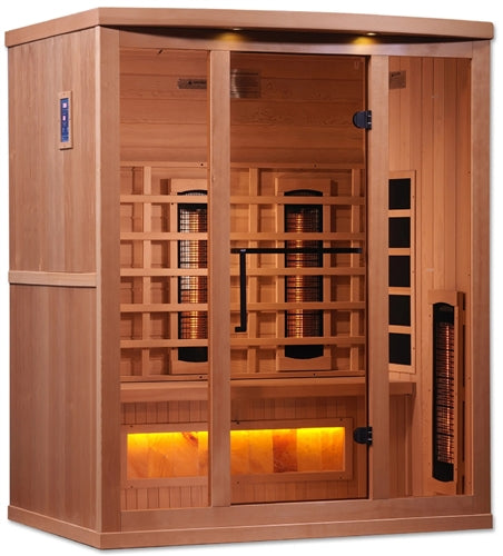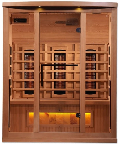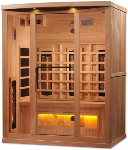 GoldenDesigns GDI-8030-02 3-Person Full Spectrum PureTech Near Zero EMF FAR Infrared Sauna with Himalayan Salt Bar (New)