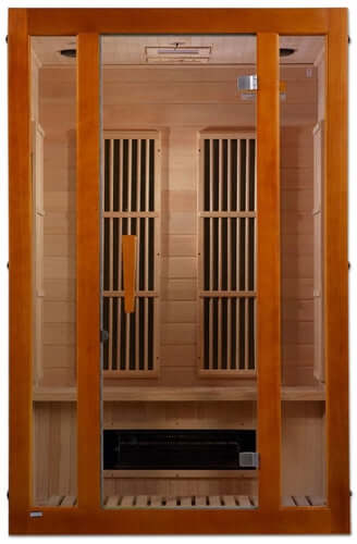 GoldenDesigns MX-J206-02S Maxxus "Aspen" Dual Tech 2 person Low EMF FAR Infrared Sauna, the Carbon Tech heating panels are engineered to produce a wider, softer heat that is evenly distributed throughout the sauna. Golden Designs Carbon Tech heating panels cover a significantly larger surface within the sauna. Maxxus Saunas bring healthy living and longevity to the privacy of your home cost effectively. Modern technology and energy efficiency in FAR infrared carbon heating panels allow beneficial penetrating FAR infrared waves to remove body toxins, increase blood circulation, ease pain from sore muscles or aching joints, burn calories and improve skin tone among other benefits. Maxxus Low EMF FAR Infrared Saunas are constructed with the environment in mind which accounts for our efforts in using Reforested Canadian Hemlock wood. Our sauna walls are double paneled constructed with the thickest interior and exterior wood planks compared to others in the same industry. This all translates to a quality sauna that retains heat more efficiently, heats up faster and wastes less energy. Our Low EMF FAR infrared Carbon Energy Efficient heating panels are 30% larger than saunas heated by ceramic tubes and penetrate skin 40% more to maximize therapeutic benefits. Unlike ceramic heaters, you will never have to replace our Carbon Energy Efficient heating panels. Maxxus Saunas Carbon Energy Efficient panels also heat up 30% faster than saunas equipped with ceramic panels and 100% faster than rock and water steam saunas. Maxxus Saunas 2-person sauna is designed for ease of use and is an outstanding value. Enjoy the convenience of operating a Maxxus Sauna with our soft touch control panel and LED display featuring sauna temperature and time functions. Every Maxxus Sauna is equipped with a reduced wattage floor and lower bench heater to allow the same benefits and treatment to your legs and feet without the burning sensation of other sauna manufactures. Enjoy your sauna session with your favorite music through the sauna's built in MP3 auxiliary connection with speakers. Maxxus Saunas enhances your sauna experience with Chromotherapy (color therapy) lighting system. The sauna plugs into any dedicated 15 amp 120 volt outlet so no special wiring is required and the sauna may be installed on carpet and at any indoor location including the basement, garage, master bath or walk in closet. Our sauna would be a beautiful and worthwhile addition to any fitness room. See and feel the difference today! Sauna Use: Indoor Only |