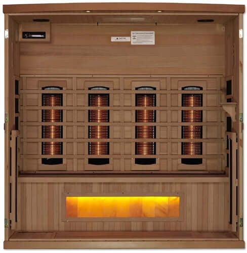 GoldenDesigns New 2022 Collection Reserve Edition GDI-8040-02 Full Spectrum with Himalayan Salt Bar, the Carbon Tech heating panels are engineered to produce a wider, softer heat that is evenly distributed throughout the sauna. Golden Designs Carbon Tech heating panels cover a significantly larger surface within the sauna. Sauna Use: Indoor Only |