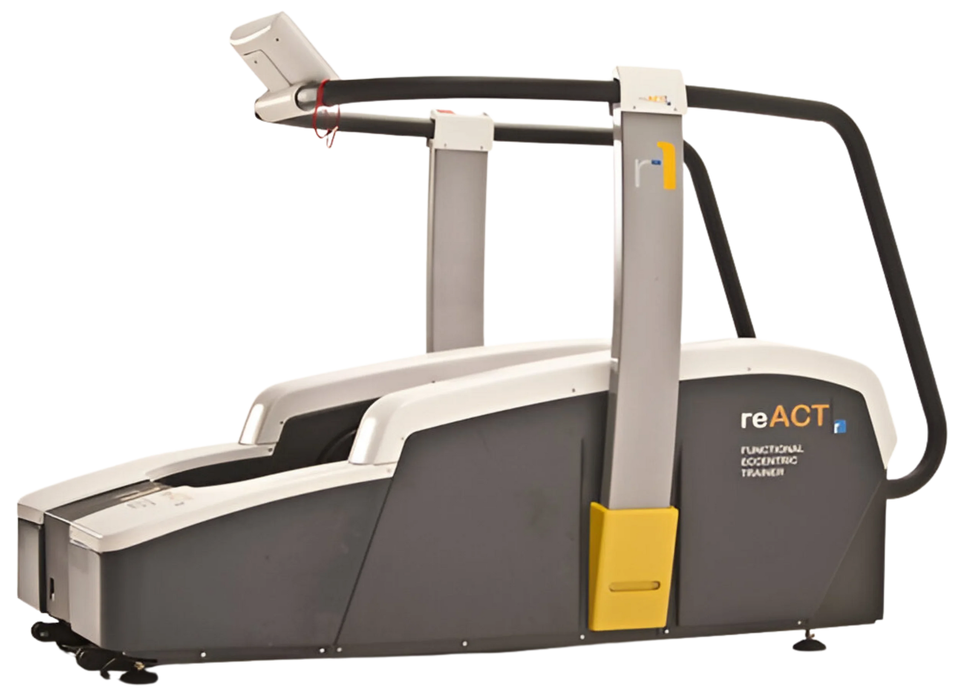 reACT™ is not just another fitness product -- it represents a truly revolutionary entry in a new category of physical training called functional eccentric Strength & Core training. reACT builds on 8 years of research and design that culminated in the creation of the QuadMill™, the first functional eccentric training system that won accolades from elite athletes to senior centers. The QuadMill has now evolved to the reACT, offering the functional benefits of the QuadMill, but featuring one of the most unique designs ever to be introduced into the fitness and rehabilitation markets.