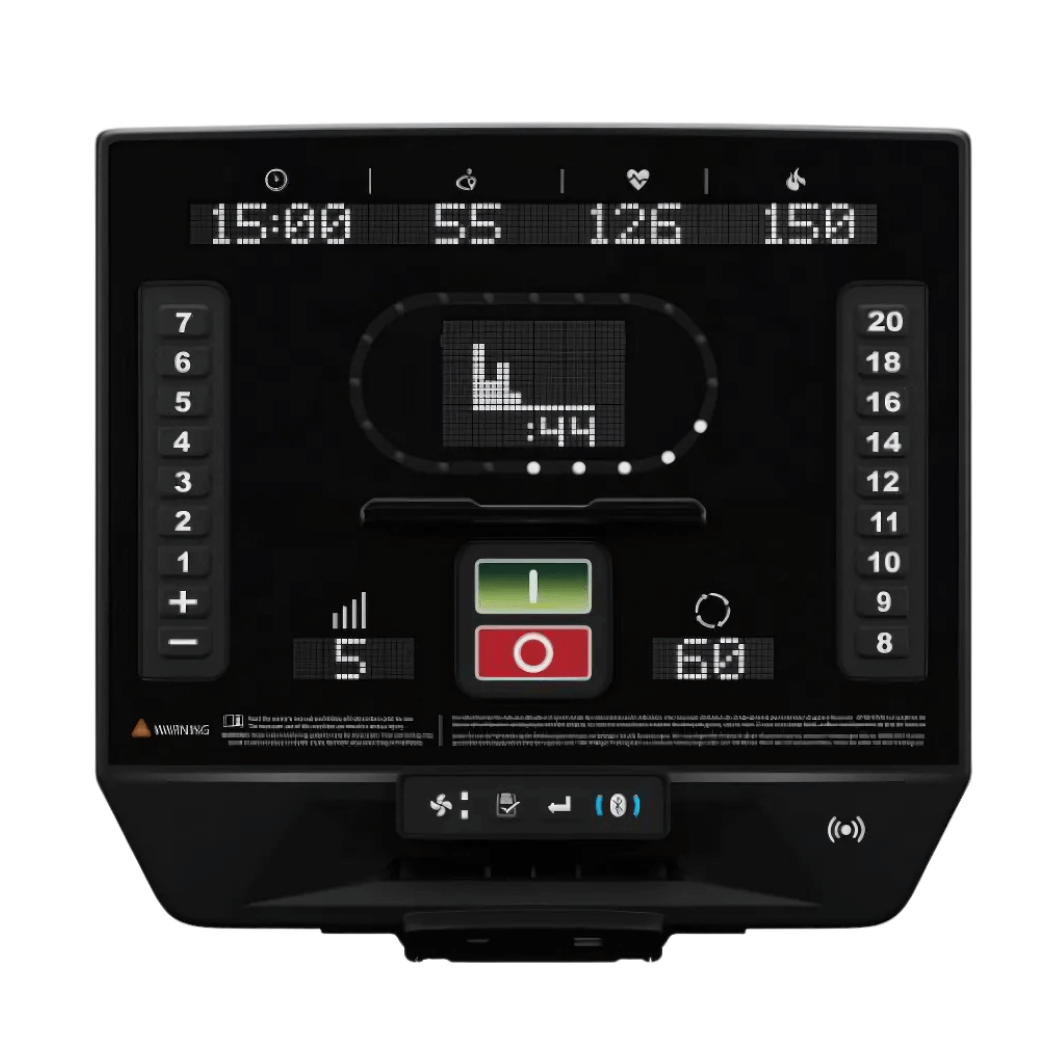 Command Center: Wireless charger, USB port, cooling fan, and dual bottle holders. Keep fresh, hydrated, and connected during intense workouts.