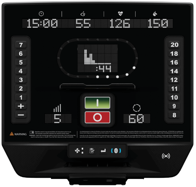 The 8 Series Rear Drive Elliptical is part of the OpenHub ecosystem, offering two display options built for seamless integration. The Apex HD Touch Display enables wireless device mirroring, interactive apps, and real-time tracking, while the Apex LED Display delivers Quick Key resistance control and essential workout data. Both include over-the-air updates and optional real-time data insights with Ecofit to ensure continuous innovation.